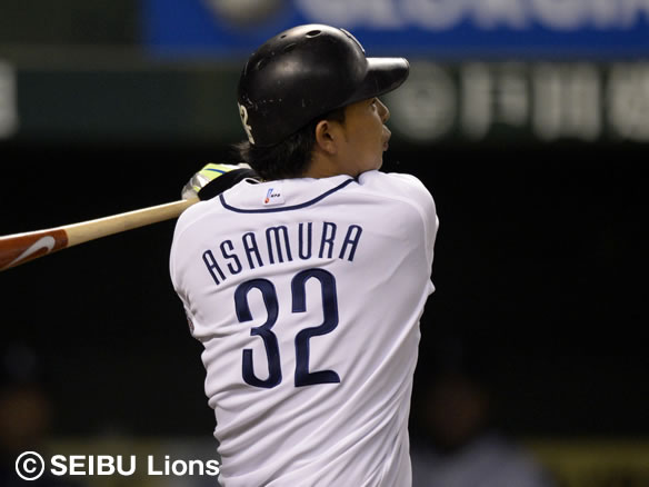 4番 浅村 左本 フルカウントからやや内角寄りのストレートを思い切り振り抜くと、打球は大きな放物線を描きライオンズファンの待つレフトスタンドに着弾! 4番・浅村の一発で先制に成功! 西4-0ロ ![]() 4