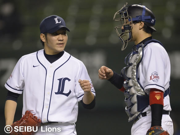 8番 炭谷 四球 外角の真っ直ぐを見送りフォアボールを選ぶ 1,2塁 |