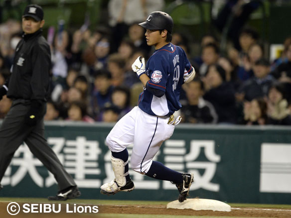 3番 栗山 四球 一度もバットを振ることなくストレートのフォアボールを選ぶ 満塁 |