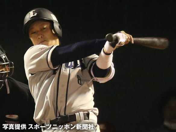 6番 渡辺直 右翼二 ランナー2塁の1-2から高めのストレートに食らいつくと、反対方向へ上がる打球がライト線に落ちた!ライトへのタイムリーツーベースでライオンズ同点! 楽2-2西 2塁 ![]() 1