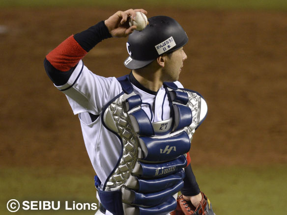 炭谷は西川の犠打を素早く拾い1塁へ送球!