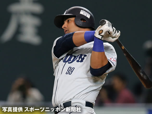 来日初打席をレフト方向へのホームランで飾ったメヒア!