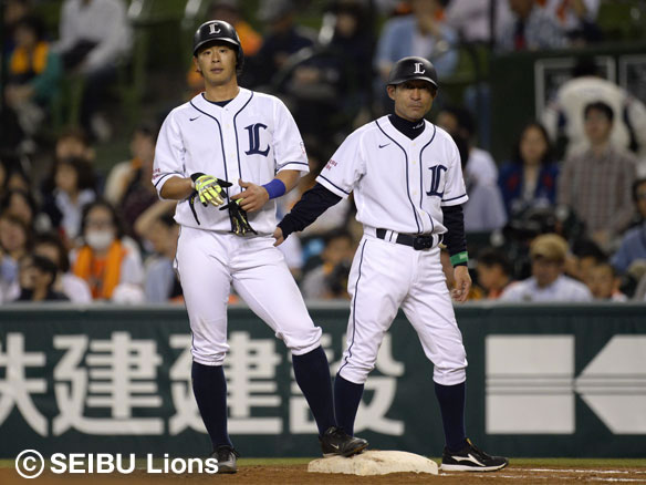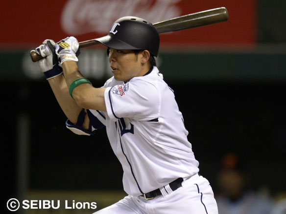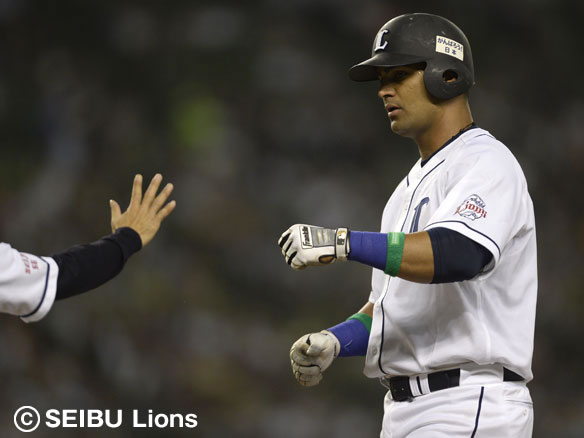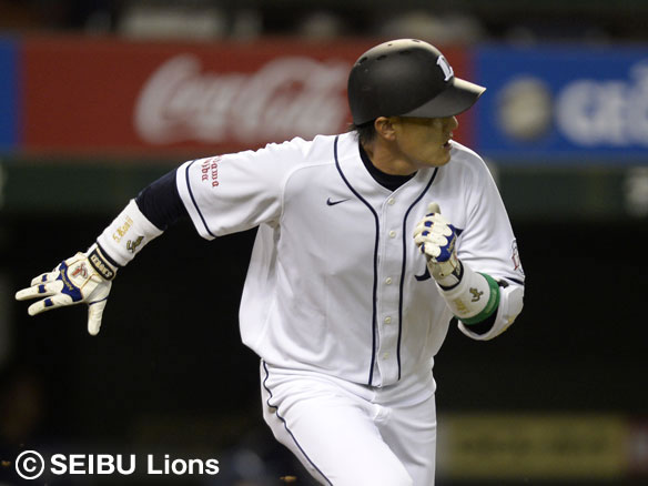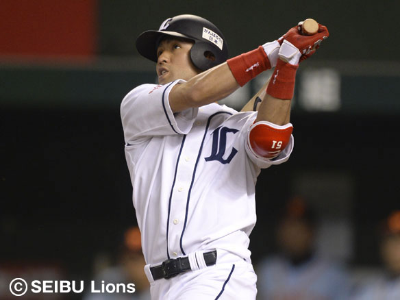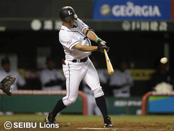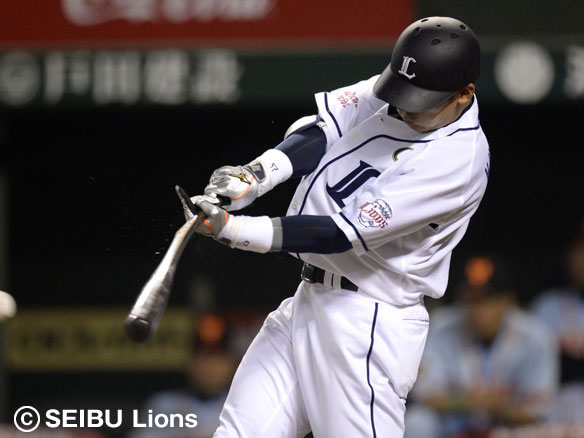 ランナー2塁の1-0からレフトへのタイムリーヒット!詰まりながらも守備の間に打球を落とし、反撃を告げる! 西1-5巨 1塁 |