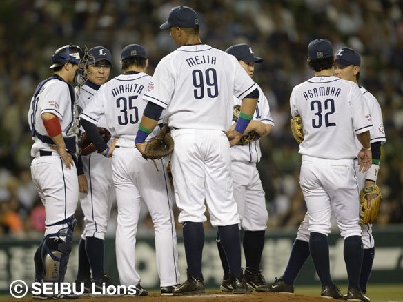 ファウルフライをメヒア(一)が捕球してバッターアウト 2アウト |