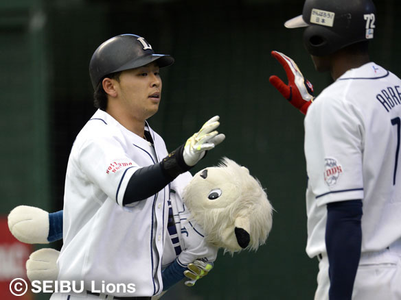 5番 メヒア 右安 ライトへのヒットを放つ 1,3塁 |