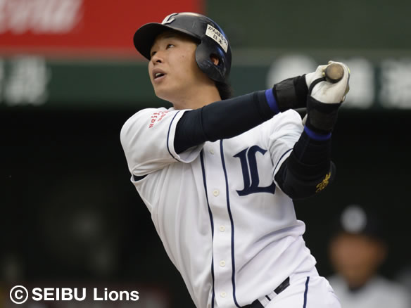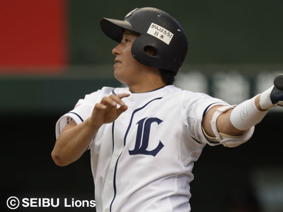 1番 秋山 左安 ランナー1,2塁の1-1からレフトへのタイムリーヒット!交流戦に入り好調な秋山のバットが、追加点をたたき出す! 西4-1中 1,2塁 ![]() 4