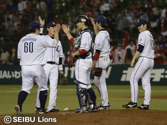 炭谷に助けられた牧田は中軸から2つの三振を奪う好投で応える