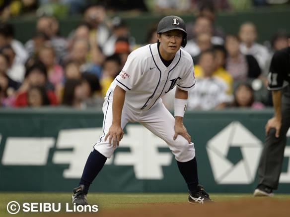 1回の打席に続いてこの回も安打で出塁した渡辺は2塁を狙う