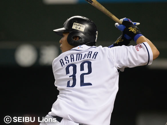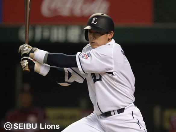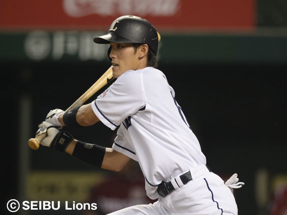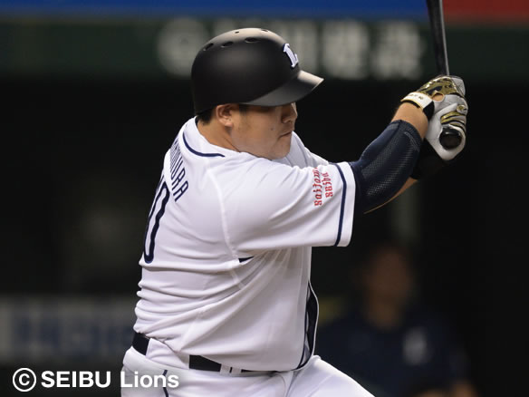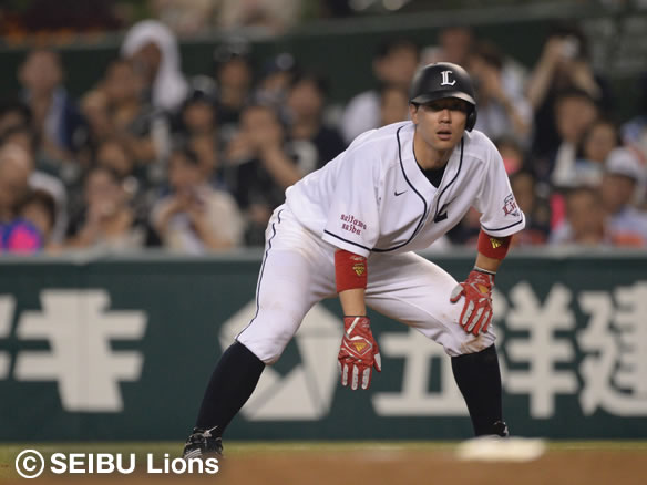 先頭の炭谷がセンター方向へ安打を放ち2塁まで進む