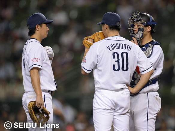 3つの三振を奪う立ち上がりを見せた岡本洋が今季初白星を狙う