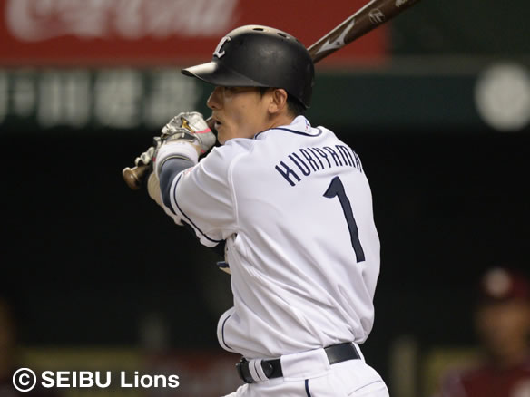 3番 栗山 左翼安 レフトへのヒットを放つ 1塁  |