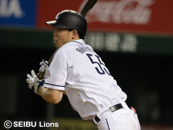 3番 栗山 中安 ランナー2塁からセンターへのヒット  |