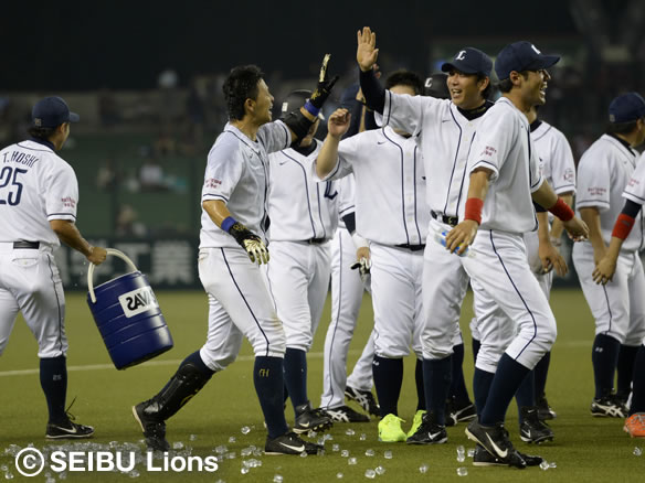6番 浅村 右安 2アウト満塁の2-2から、外角低め150キロのストレートに食らいついた打球は右中間へ。ダイビングするライトの横を破る劇的なサヨナラヒット! 西2-1楽 ゲームセット ![]() 2