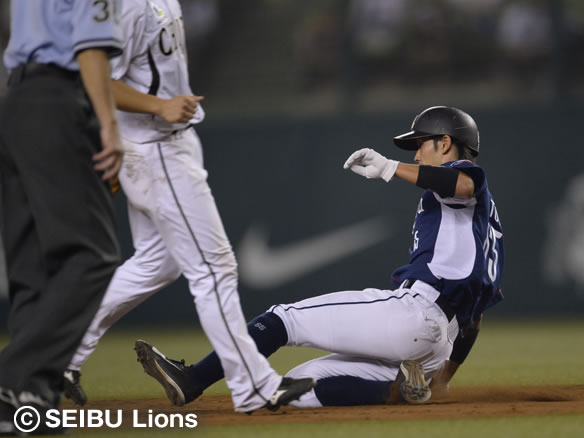 5番 メヒア 左本 カウント2-1から待っていたかのように変化球をジャストミート!弾丸のような飛球がレフトスタンドへ飛び込む、2ランホームランに! 西2-3ロ ![]() 2