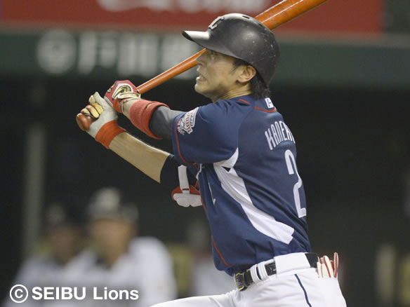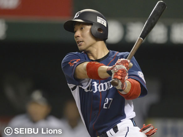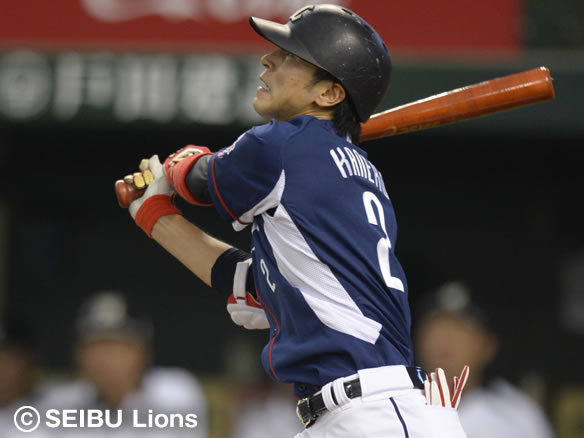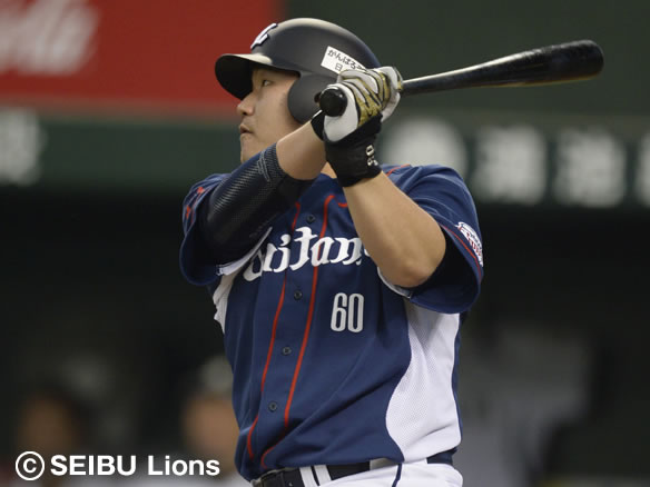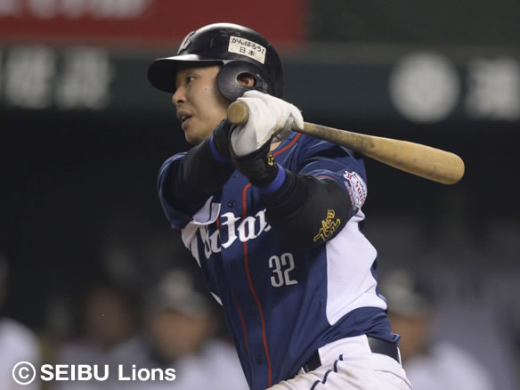 9番 金子侑 右中三 ランナー1,2塁の1-0から甘いボールを捉え、鋭いライナーが右中間を切り裂く!タイムリースリーベースでライオンズ逆転! 西4-3ロ 3塁 ![]() 4