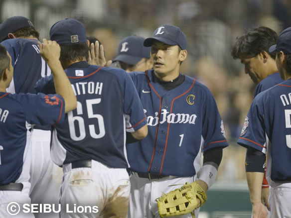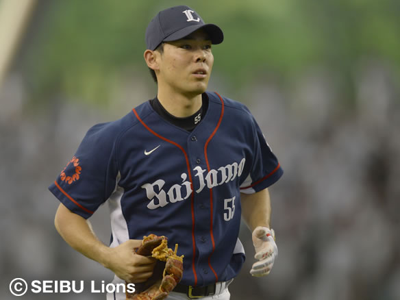 投手 涌井 1番 秋山 四球 外角の真っ直ぐを見送りフォアボールを選ぶ 1塁  |