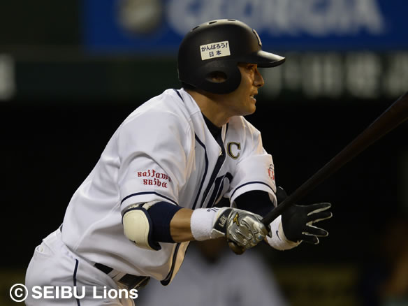 3番 栗山 中安 センターへのヒットを放つ 1塁  |