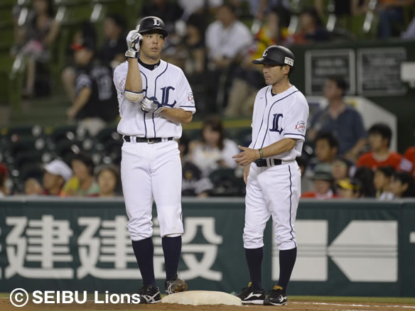 2番 秋山 中安 センターへのヒットで出塁 1塁  |