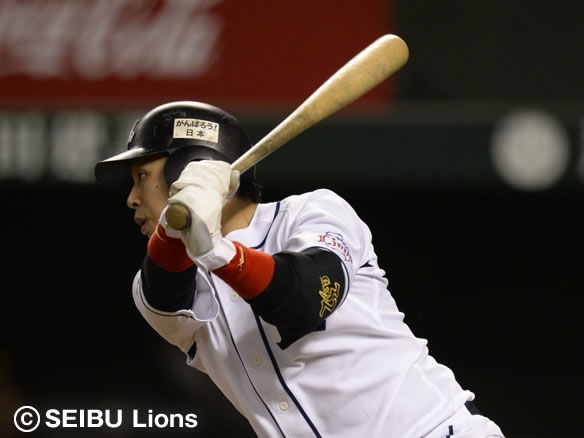 3番 栗山 左安 レフトへのヒットを放つ 1,2塁  |