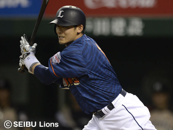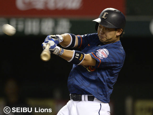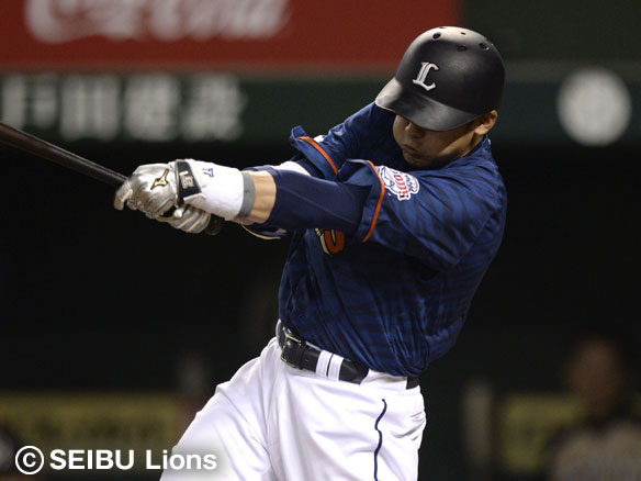 チーム初安打を放つ栗山!