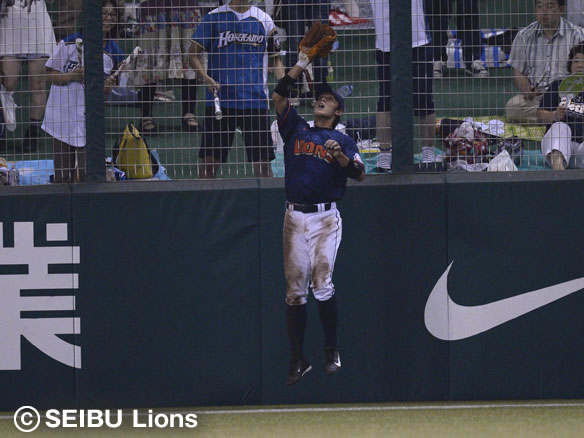 斉藤は中田の打球を好捕しピンチを救う!