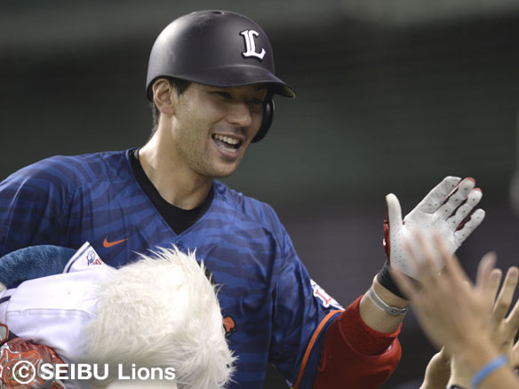 投手 鍵谷 8番 炭谷 左中本 1-0からの2球目、外角寄りのストレートをフルスイングすると、打球は失速することなくレフトスタンドへ一直線! 5号ソロホームランで突き放す! 西3-1日 ![]() 2