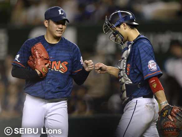 高橋は難なく3人で締め炭谷とグータッチをかわす!