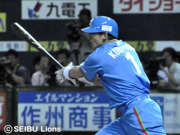 1番 秋山 四球 一度もバットを振ることなくフォアボールを選ぶ 1塁  |