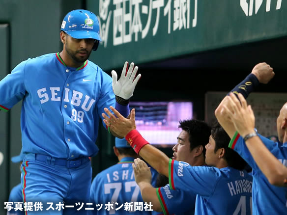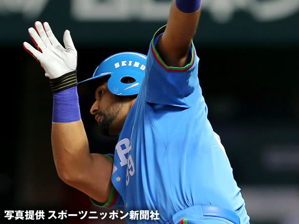 投手 スタンリッジ 5番 メヒア 左中本 カウント0-1から高めに浮いたスライダーをジャストミート!高く上がる打球は左中間スタンドのライオンズファンが集うスペース付近へ突き刺さった!23号ソロホームランでライオンズ同点! ソ2-2西 ![]() 2