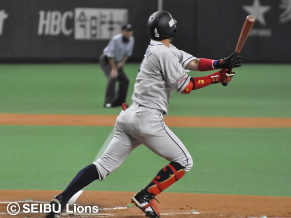2番 鬼崎 左中二 1-0から放ったライナーは左中間を真っ二つに破る!タイムリーツーベースでライオンズ先制! 日0-1西 2塁 ![]() 0