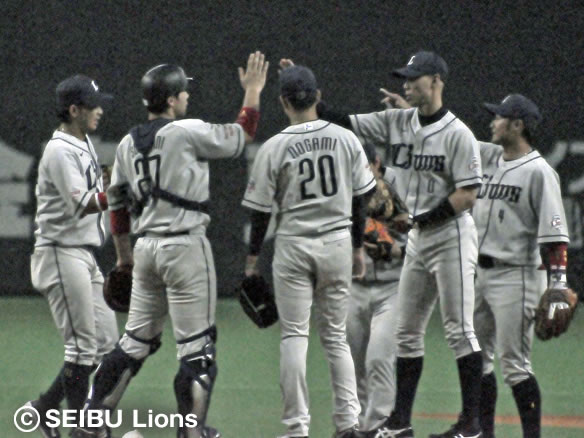 6番 秋山 左越安 ランナー1,2塁の1-0から振り抜いた打球は、高く上がってレフトフェンスを直撃!タイムリーヒットとなりライオンズの勢いが止まらない! 日0-7西 1,2塁 ![]() 0