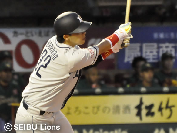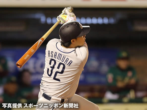 センター方向への安打で8試合連続安打を記録した1番・浅村