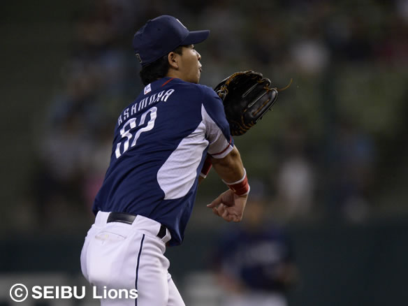 6番 秋山 四球 一度もバットを振ることなくフォアボールを選ぶ 1塁 |