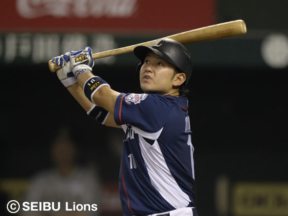 昨夜タイムリーを放った秋山の打球はレフトに捕球される