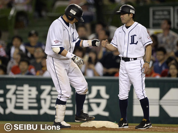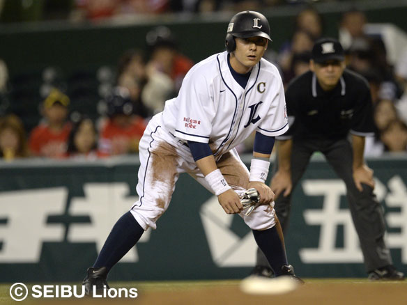 1番 栗山 中安 センターへのヒットで出塁 1塁 |