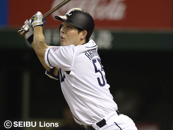 秋山は先制のタイムリー3ベースヒットを放つ!