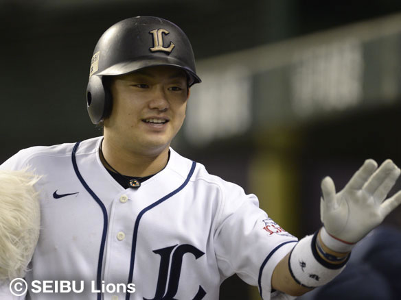 5番 メヒア 左安 ランナー2,3塁の2-0から高めに浮く失投を見逃さずに引っ張り、痛烈な打球がレフトの前で弾む!3塁ランナーが生還し貴重な追加点を挙げる! 西2-0ソ 1,3塁 ![]() 2