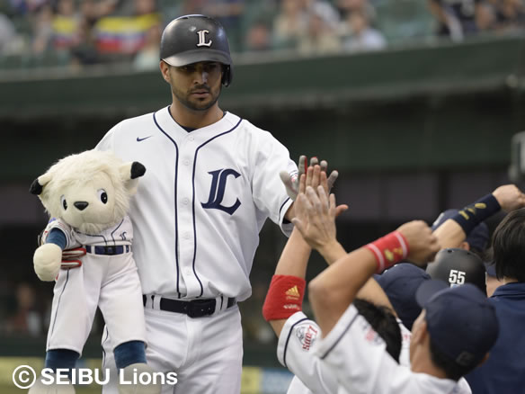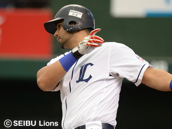 5番 メヒア 左中本 1-1から内角寄り高めのストレートをはじき返すと、メヒアはゆっくり1塁へ歩き出す!特大の当たりは左中間スタンド最上段へ飛び込み、反撃の号砲を鳴らした! 西1-3ソ ![]() 1