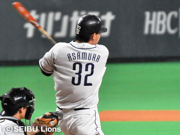 3番 浅村 右安 ライトへポテンヒットを放つ 1塁 |