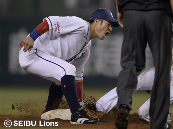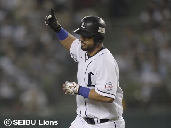 4番 メヒア 右中本 1アウト2塁の1-0から外角低めのストレートを反対方向へはじき返し、グングン伸びる打球が右中間スタンドへ飛び込んだ!2ランホームランでついに勝ち越し! 西9-7日 ![]() 9