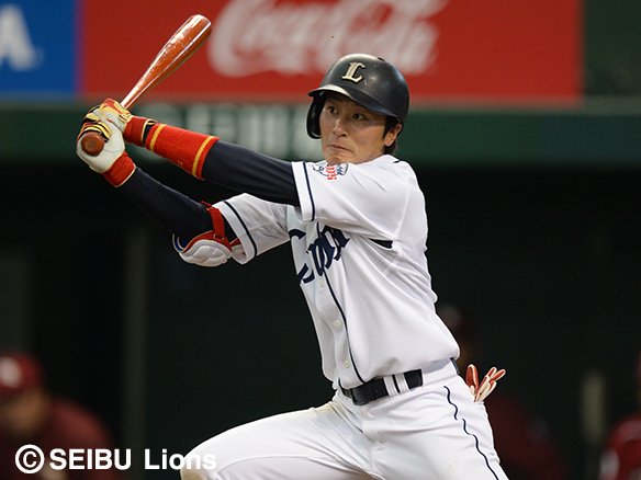 2番 栗山 左安 流し打ちし、鋭い打球が三遊間を抜ける! |