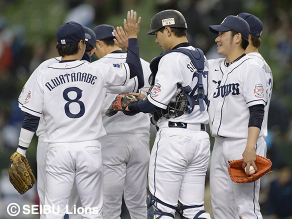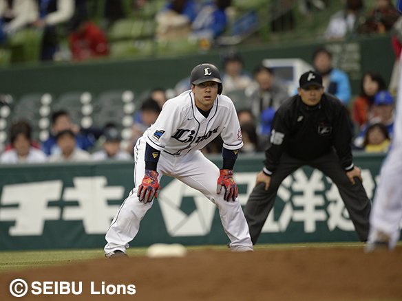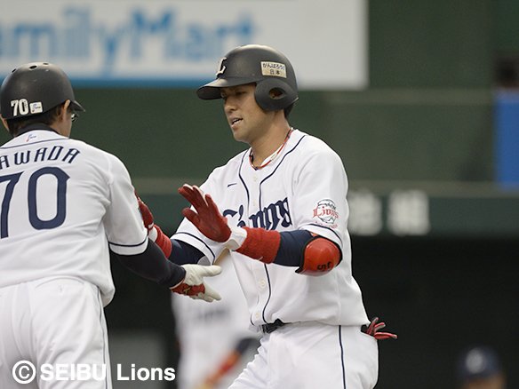 栗山がチャンスを作ると、中村とメヒアの連続タイムリーが飛び出して2点を追加! 打線の中軸が活気づきました! |