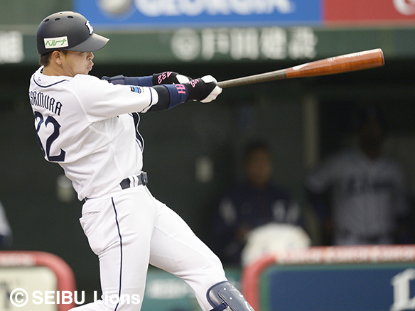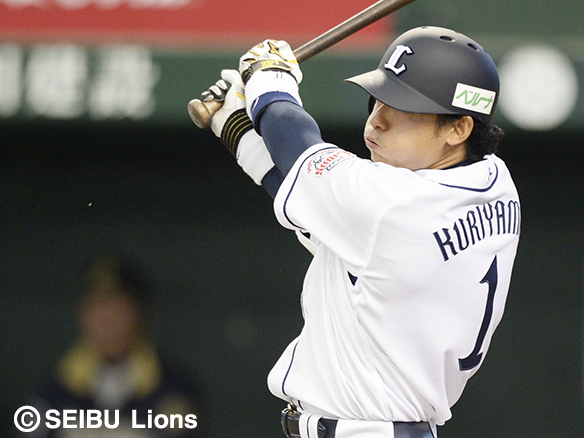 1番 秋山 四球 外角のストレートを見送りフォアボールを選ぶ 1塁 |