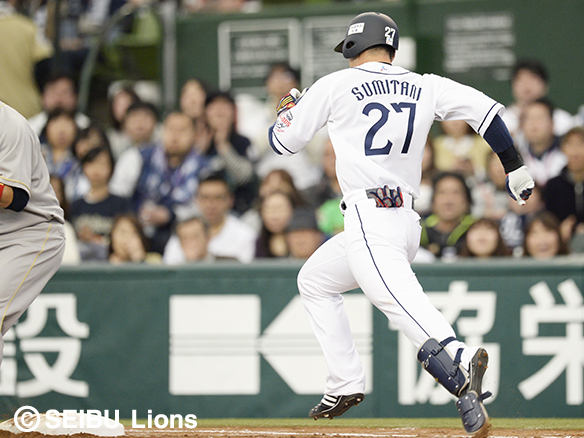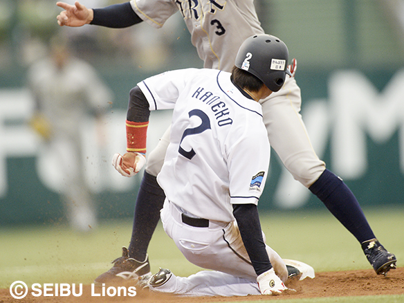投手 海田 2番 栗山 左安 レフトへのヒットを放つ 1塁 |