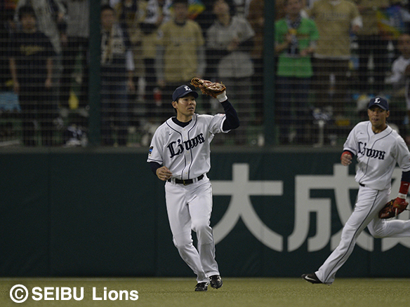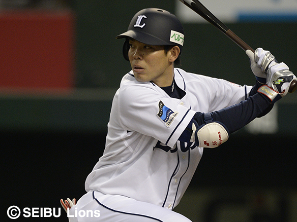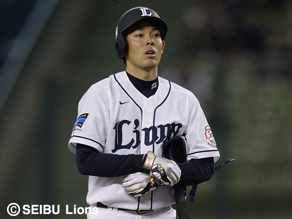 1番 秋山 右翼二 2アウト2塁の2-0から引っ張ったライナーは、ライト線を襲う!秋山のタイムリーツーベースに、スタンドもベンチも大いに盛り上がる! 西5-3オ 2塁 ![]() 5