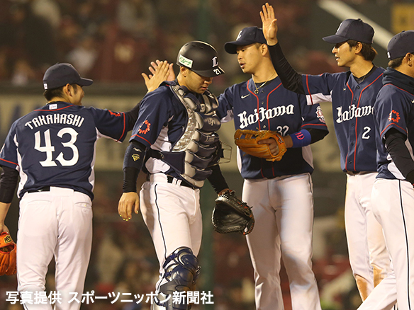 開幕4連勝にハイタッチで喜ぶライオンズナイン