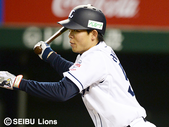 | 投手 牧田 1番 中村晃 左安 レフトへのヒットを放つ 1塁 | ||