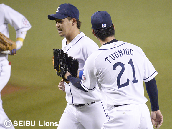 投手 十亀 投手交代:十亀→増田 守備変更:渡辺直→ショート |
