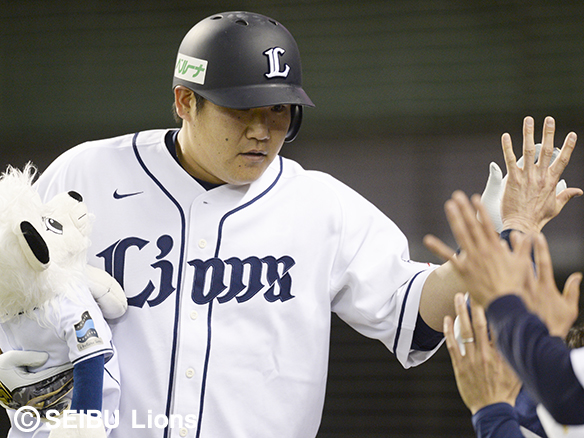 1番 秋山 四球 外角のストレートを見送り四球を選ぶ 満塁 |