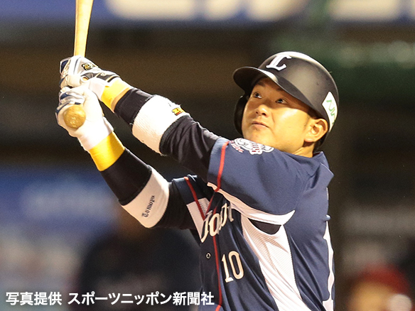 1番 秋山 左翼二 2アウト3塁から流し打ちし、レフトへタイムリーツーベース!追加点を挙げる! 楽1-4西 2塁 ![]() 1